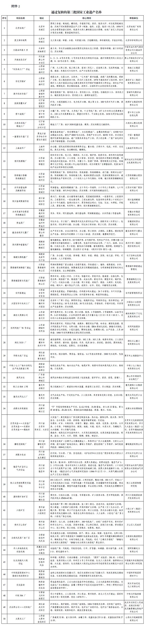 2.通过复核的第三批国家工业遗产名单